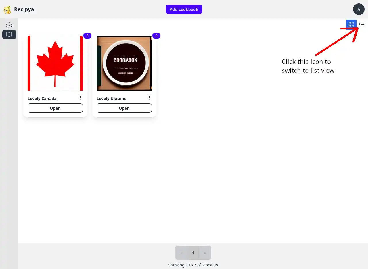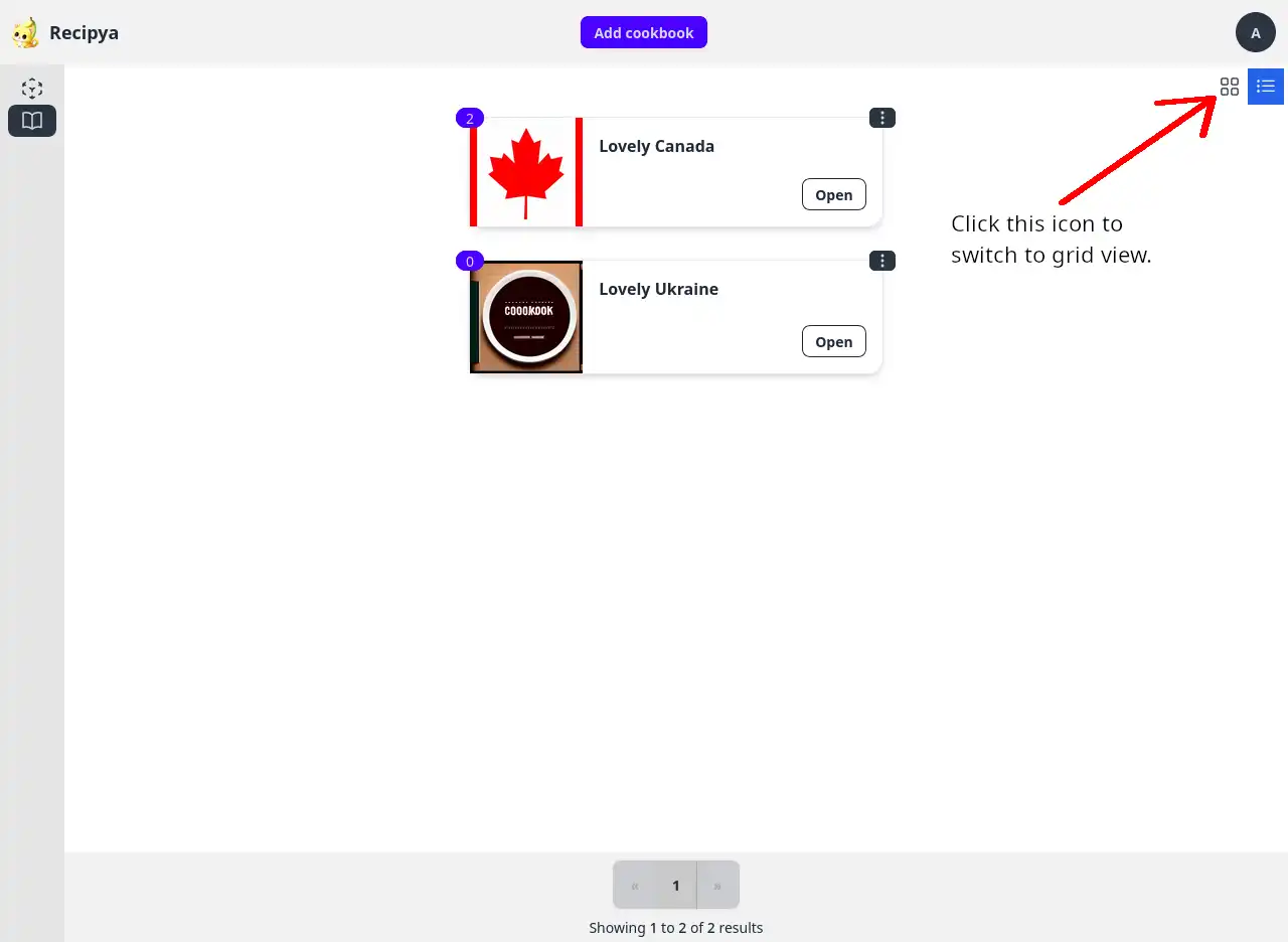 To reorder them, first open a cookbook. In the following image, we want to switch the position of the first recipe with that of the last.