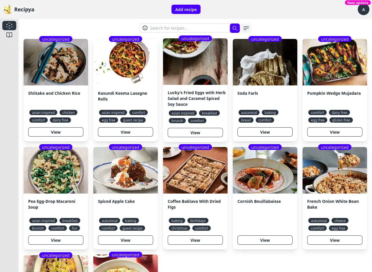 You can update the application from within the web application once an update becomes available. Your data will be backed up under /path/to/recipya/Backup/global before the update in case something goes south. The update checker is run once every three days.